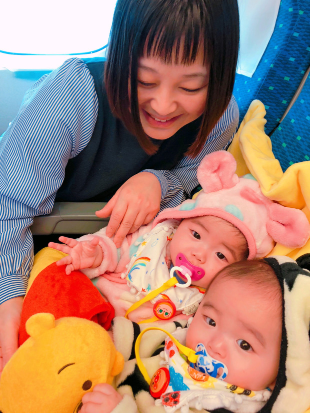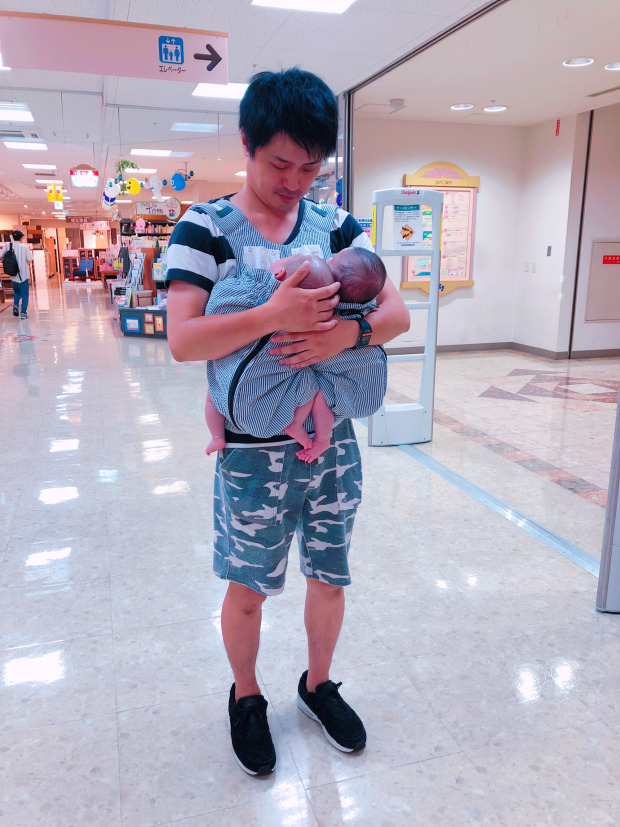 ▲毎月お父さんが埼玉から会いに来てくれて、その時だけまとめて3時間の睡眠がとれていました。~双子用抱っこ紐~