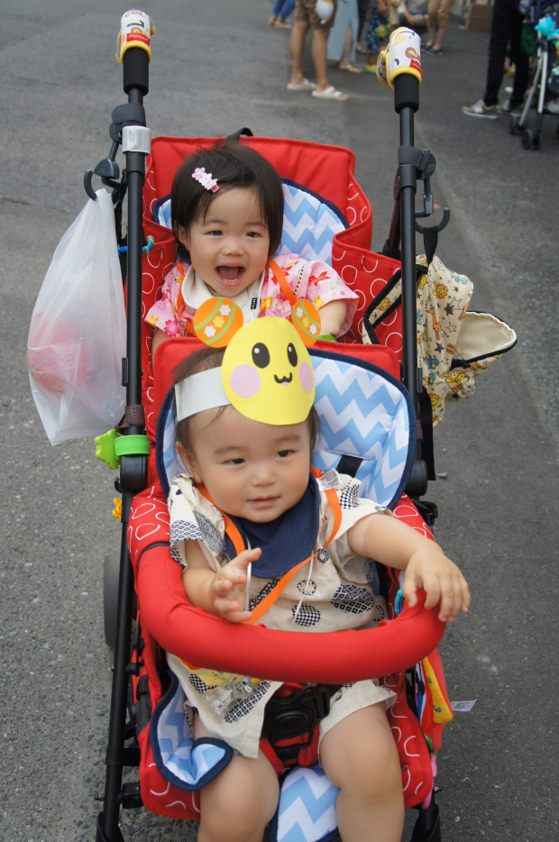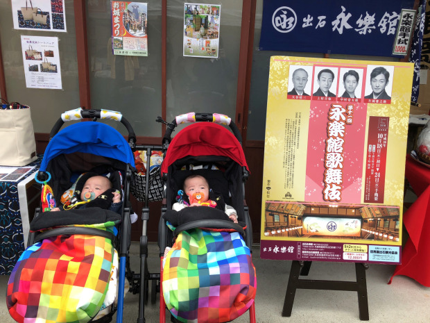 ▲豊岡での子育て~シングルを連結できる横型ベビーカー~