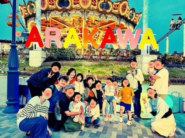▲大変な時期に支え合ったかけがえのない友人達と、移住前にみんなで遊園地(隠しちゃってるけど…みんな素敵な笑顔なんです!)