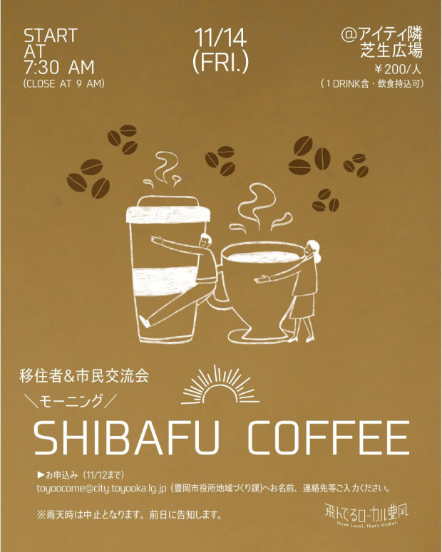 SHIBAFU PARTYに引き続き、豊岡駅近くのアイティ横の芝生広場で、「SHIBAFU COFFEE」を開催しました。