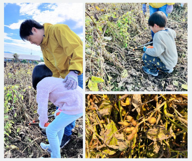 コウノトリが飛ぶ畑で過ごした大豆収穫時間~「てまとひまと」大豆体験①~
