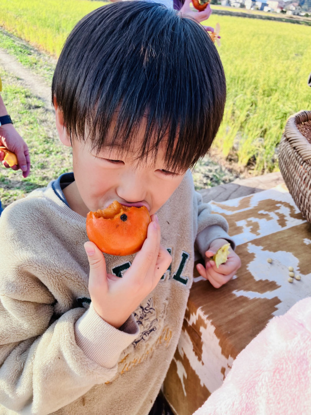 都会育ちの我が子たちは、柿そのものにあまり馴染みがなく、躊躇なく皮ごと豪快にかじる姿を見たとき、私自身非常に驚きました。