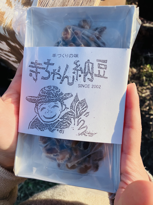 ▲てらだ農園さんからお土産でいただいた「寺ちゃん納豆」。大粒で冬限定の手作り納豆。