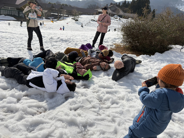 みんなで雪の上に寝そべり、同じ空を見上げます。