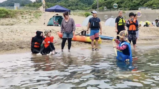 そんな中海に浸かっているご家族の写真を撮る場面がありました。